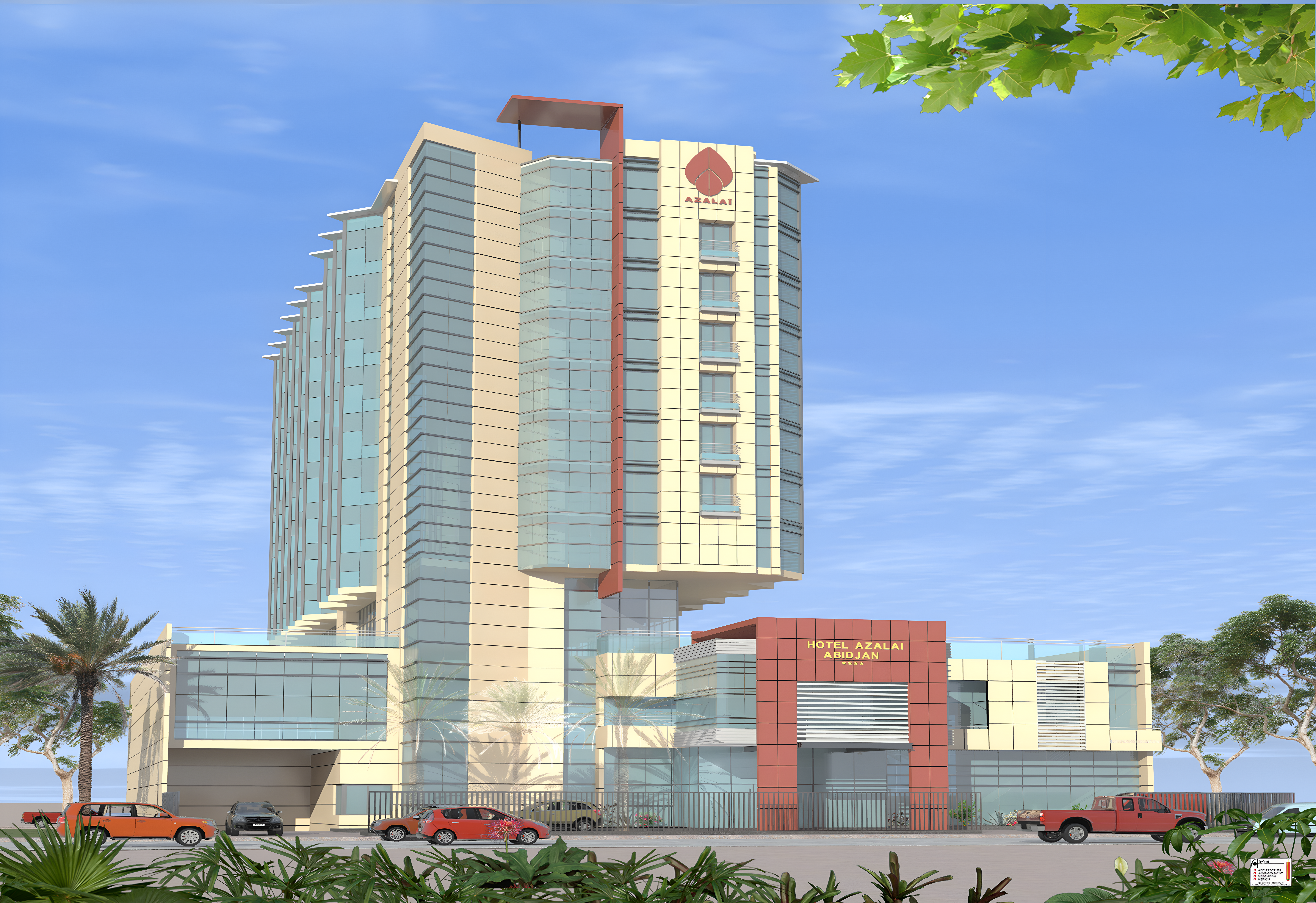 un bâtiment de type (R+13) de 300 Chambres.